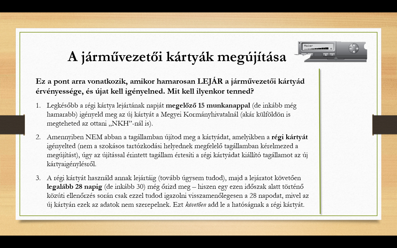 a kolléga elment az NKH-hoz és megigényelte az új kártyát. A régi