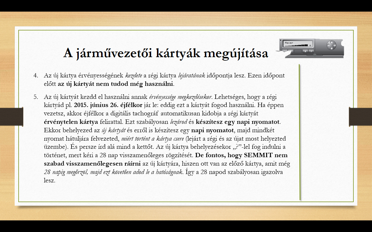 hatálya alá tartozó, menetíró készülék (tachográf) használati